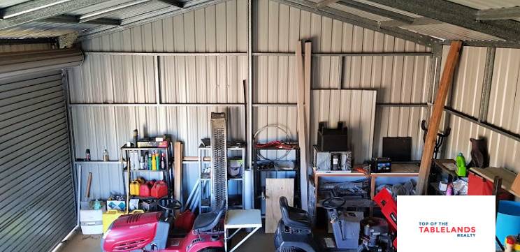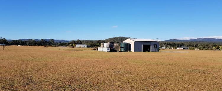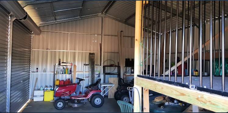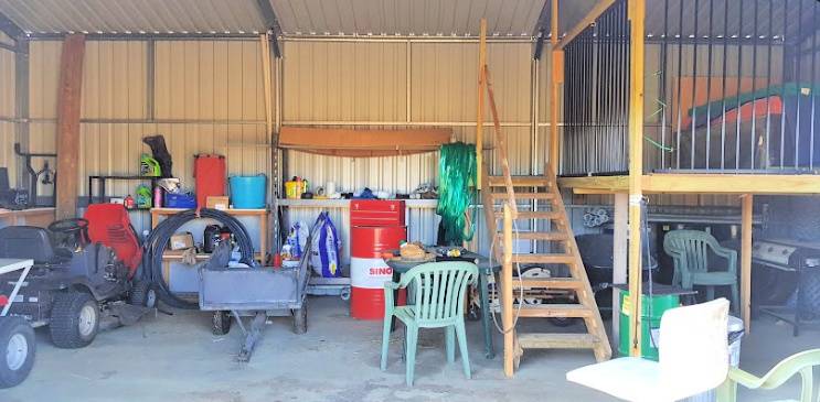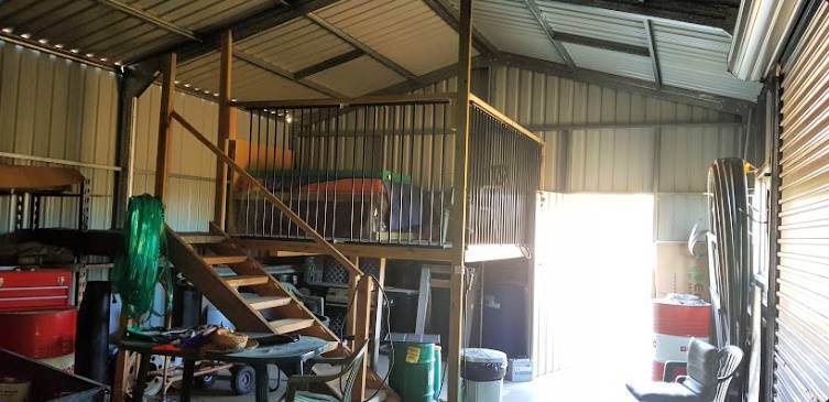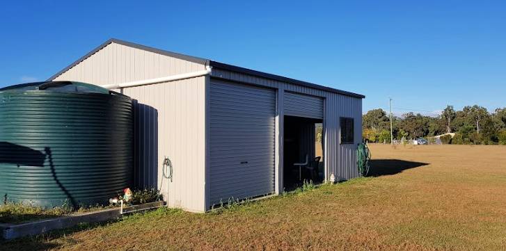 The 54m2 liveable shed is council approved, 3 bays, and concrete slab floor with a mezzanine level built-in, eco-toilet and rainwater tank and town water, power available at the front of the block.