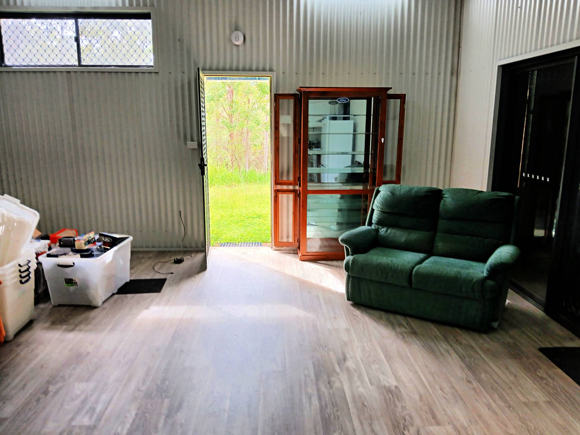 24 meter by 9 meter , one section of the shed has a kitchen bathroom and living space, lined and air conditioned . Town water and rain water tanks. The shed has two 3 meter roller doors with a laundry fitted . Close to the local school , short drive to the shops in Herberton  , call Chris 0415906711