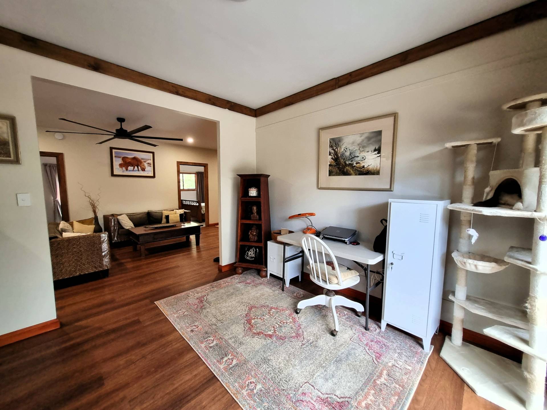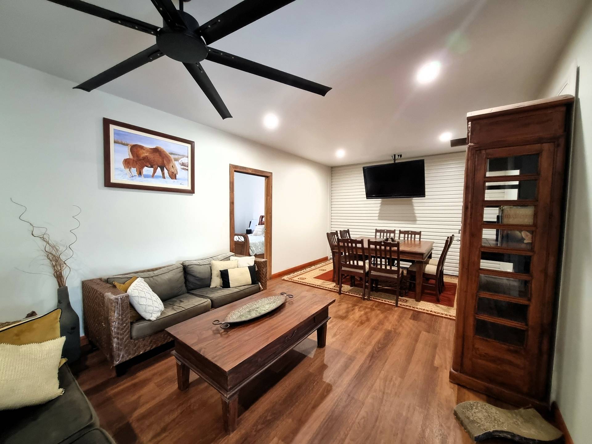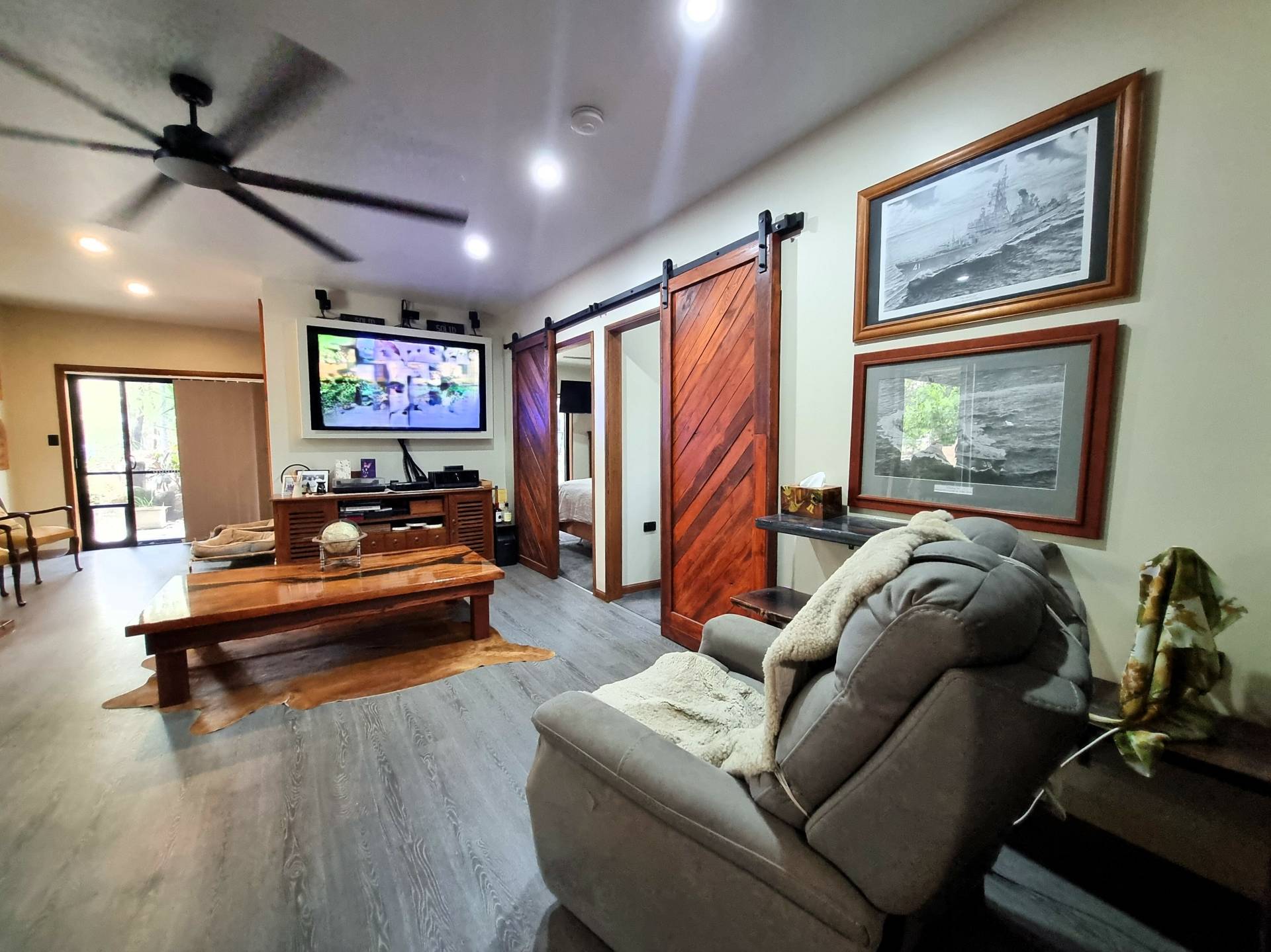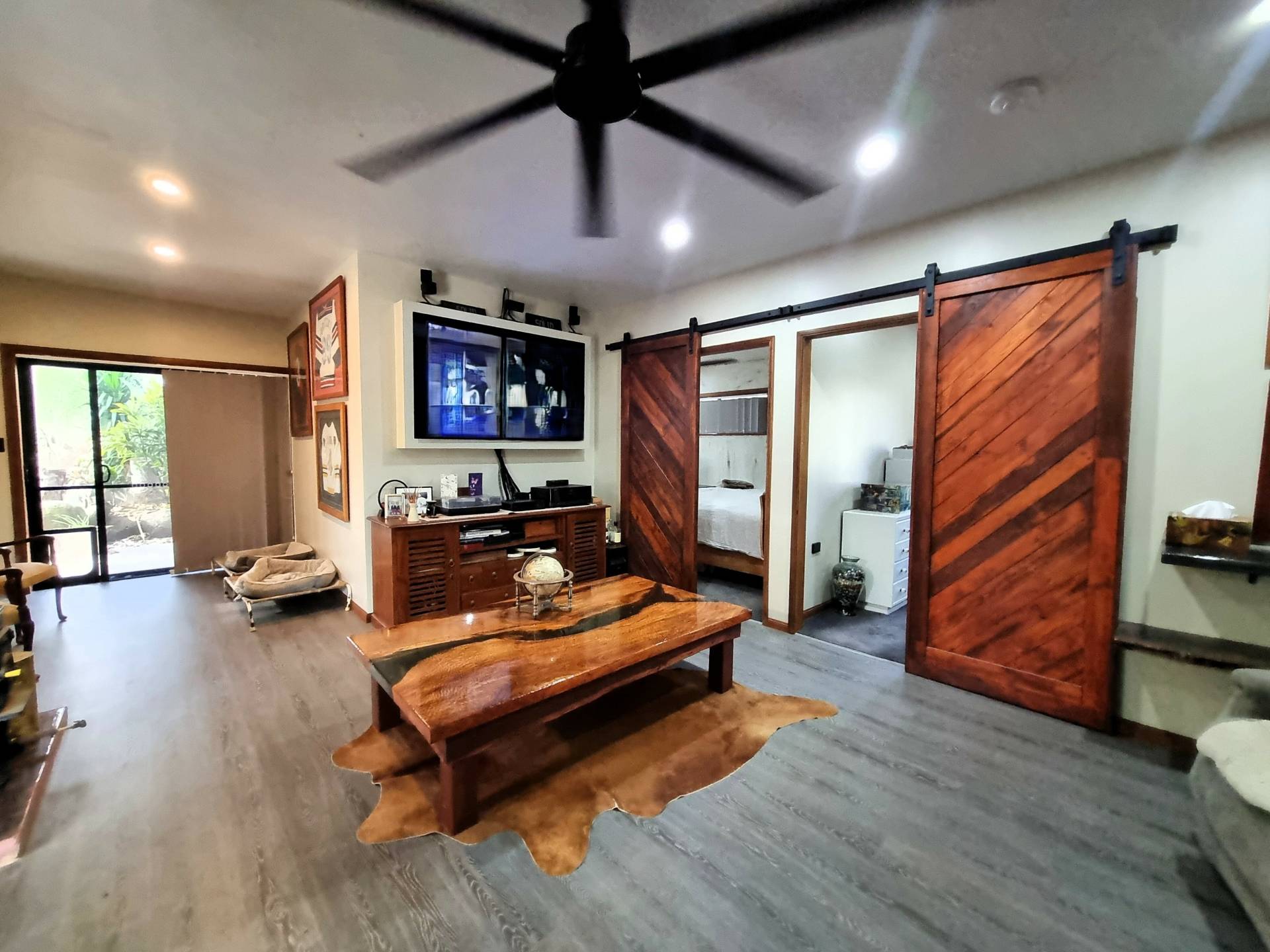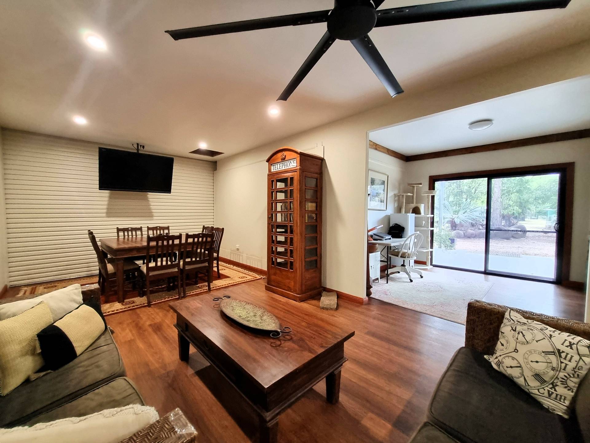 All items not fixed are negotiable except king size bed in master bedroom, queen bed in bedroom next to the main bathroom, two grey recliner chairs, the Granddaughter clock, and two antique sitting chairs near dog beds.