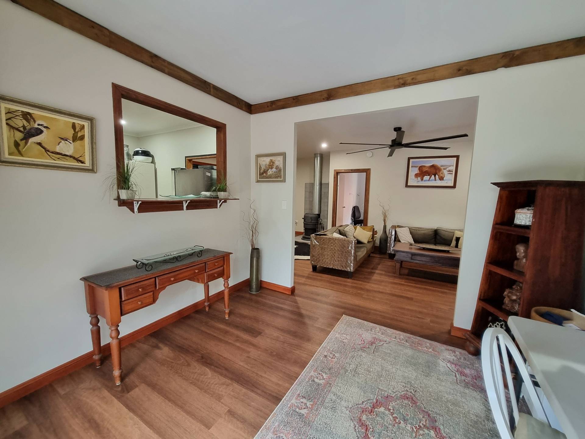 Adjacent to the dining room the wide entrance makes moving furniture into the home a breeze. The entrance is a great place for an office nook if working from home.