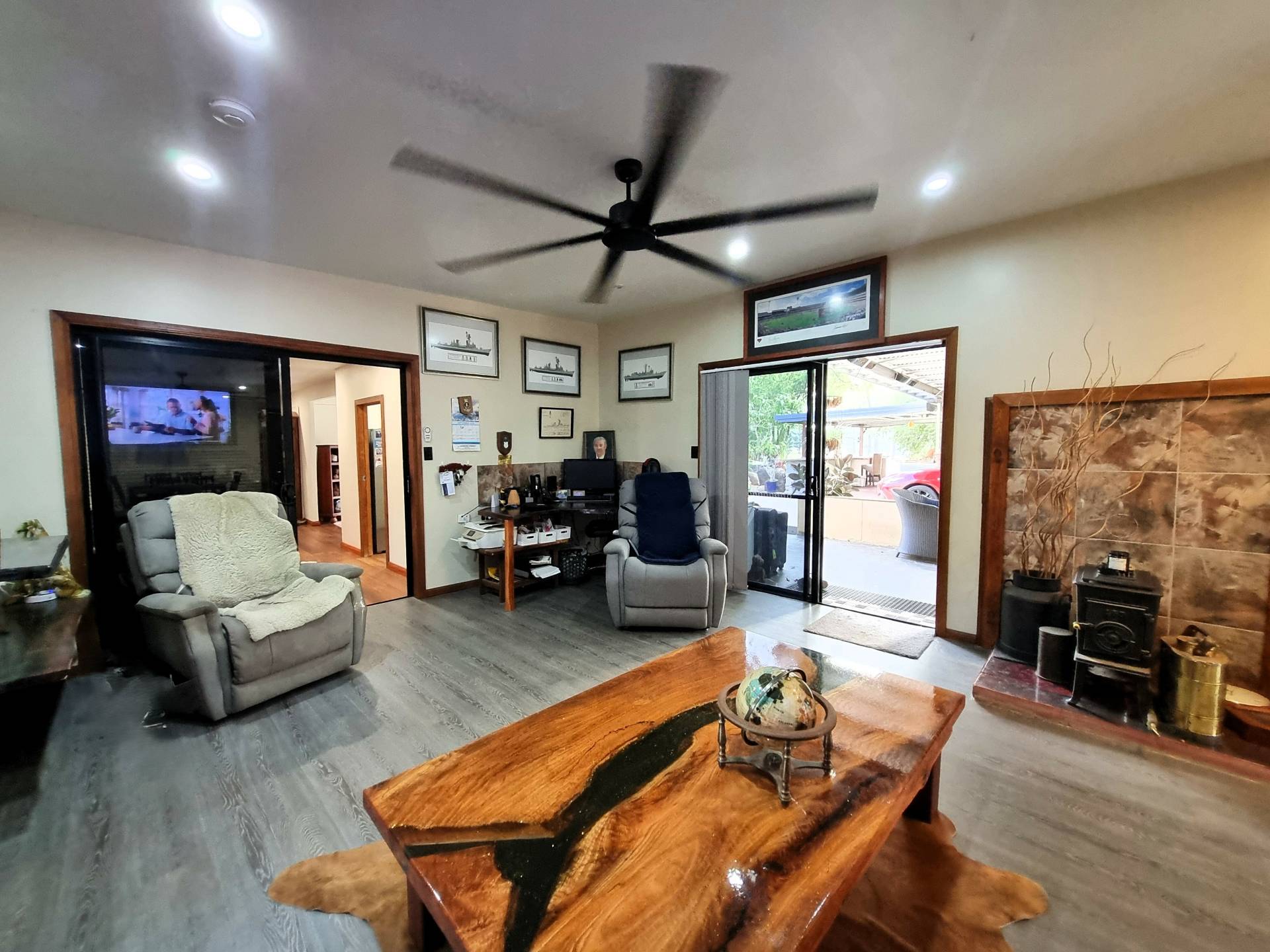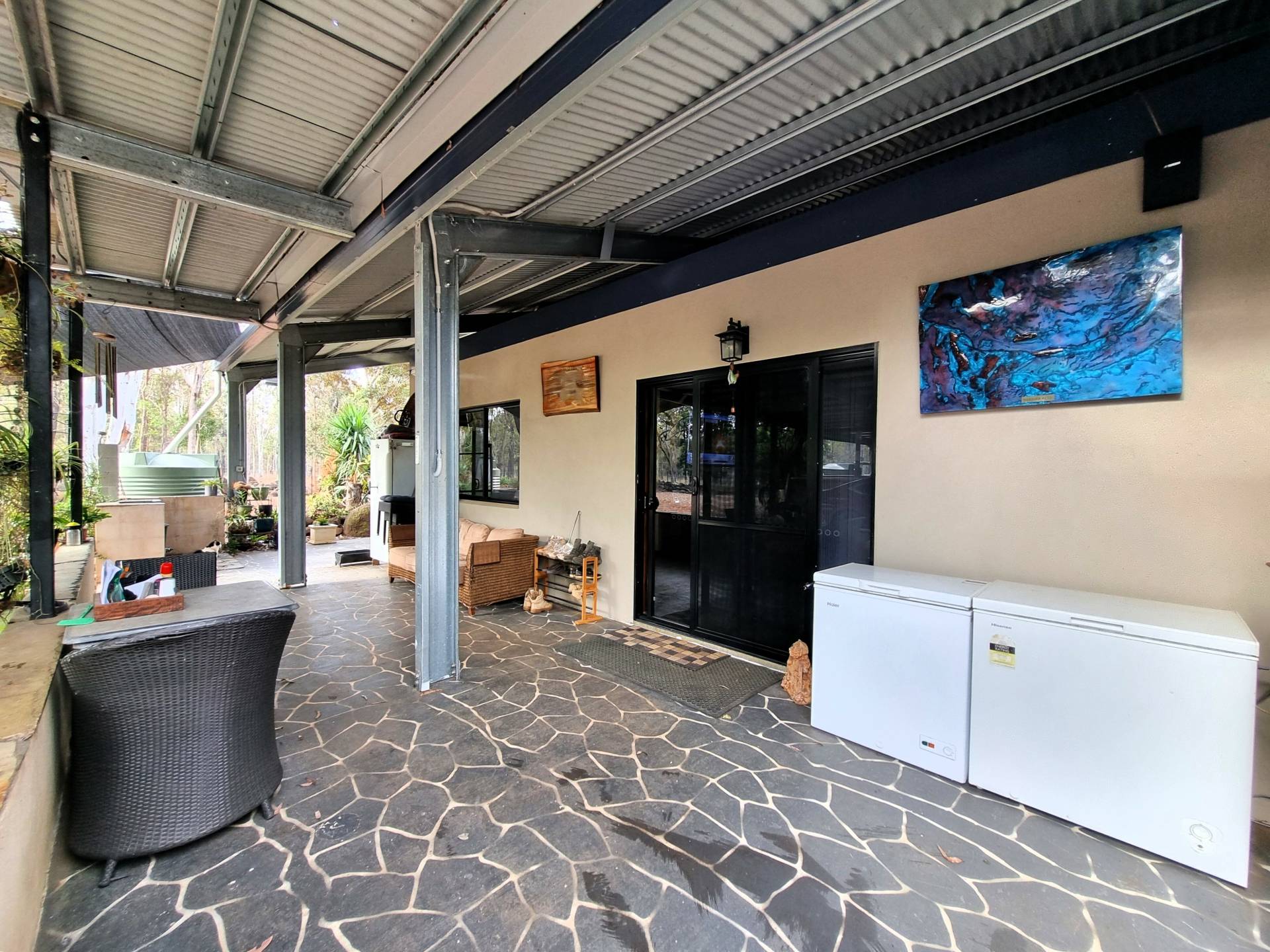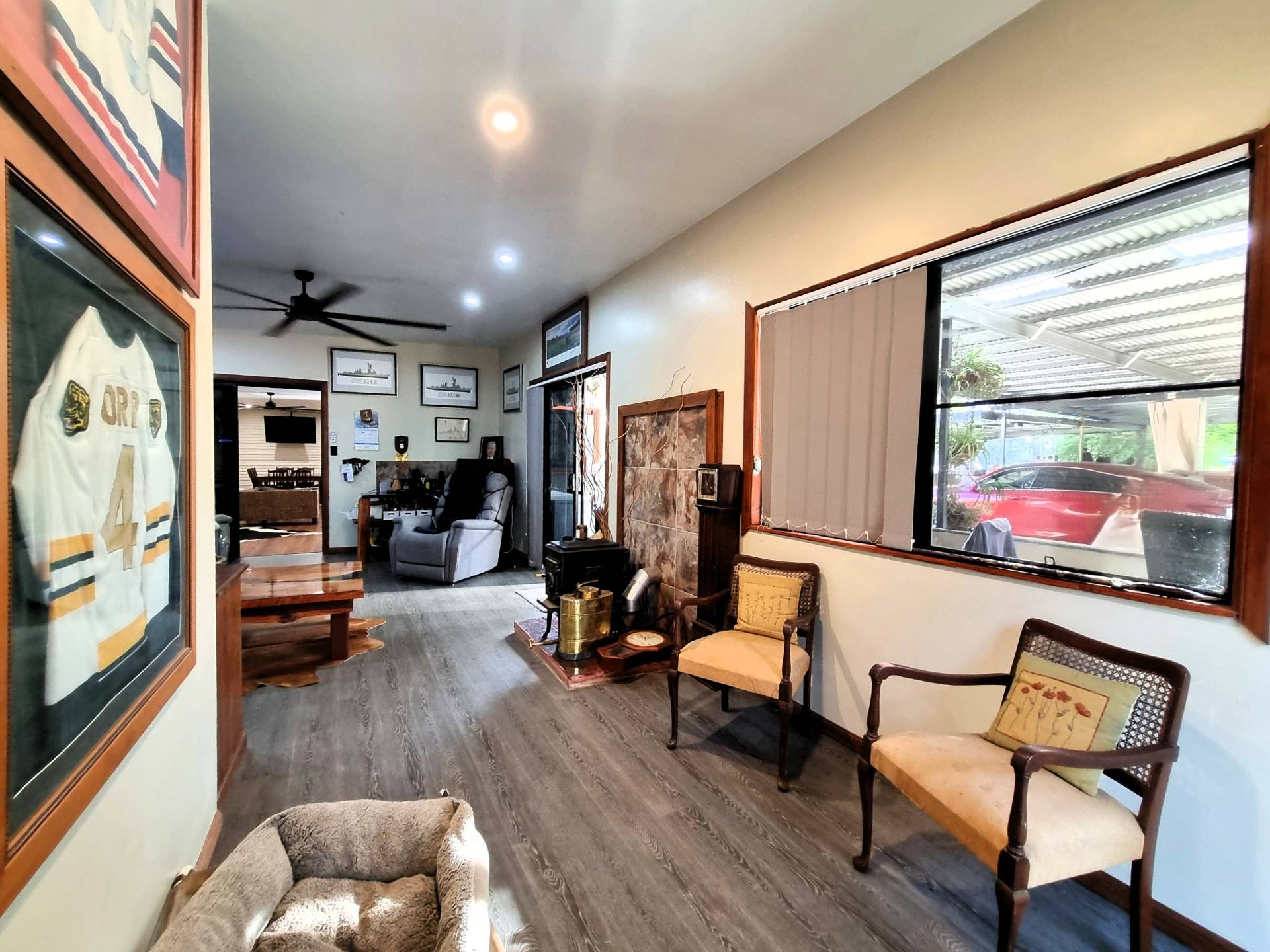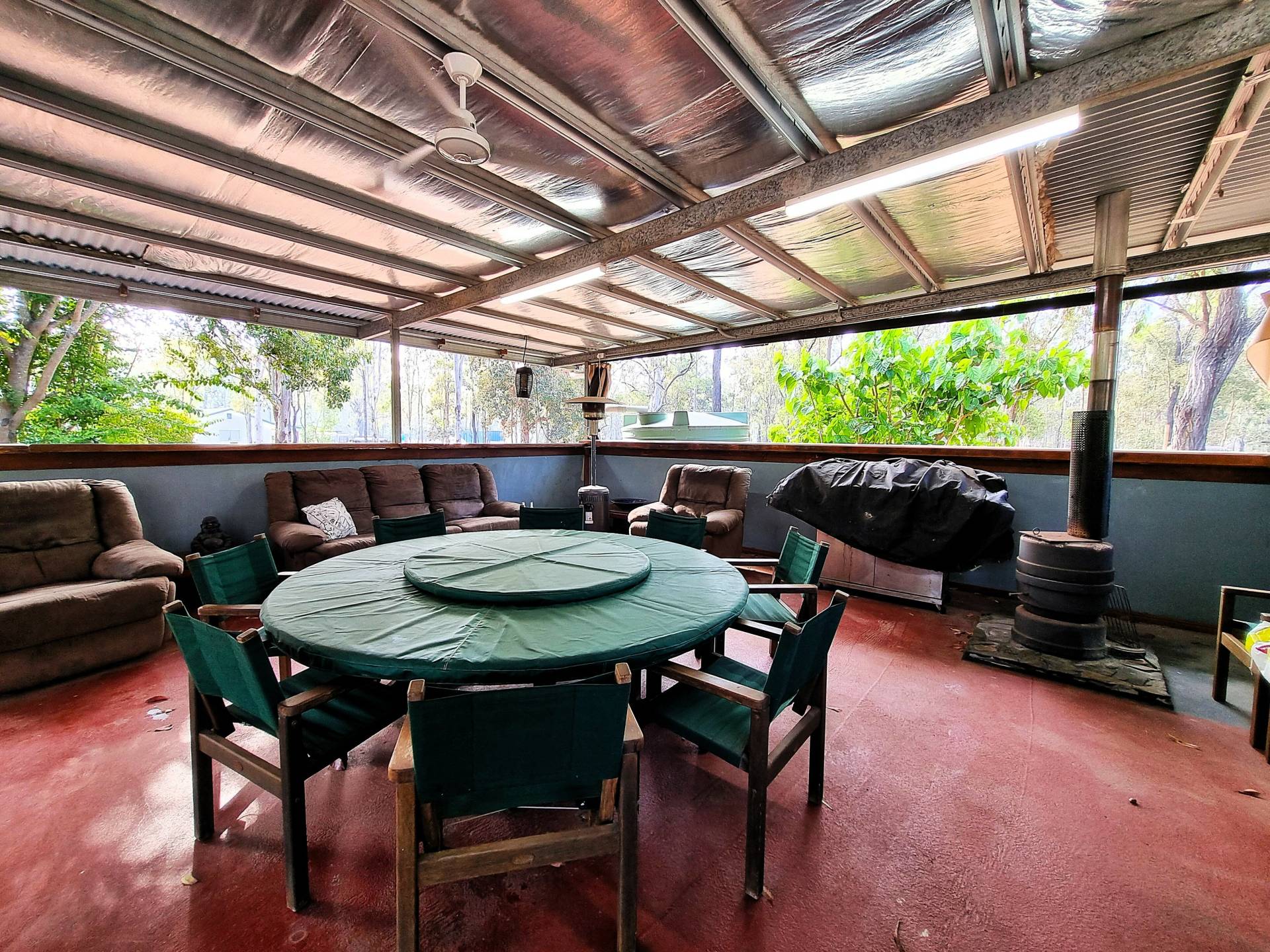 Step outside and walk past the double carport to discover a huge undercover entertainment area including a wood heater and loads of room for parties and family gatherings.