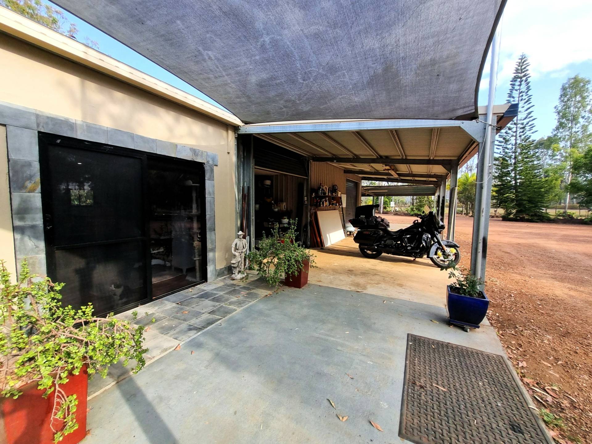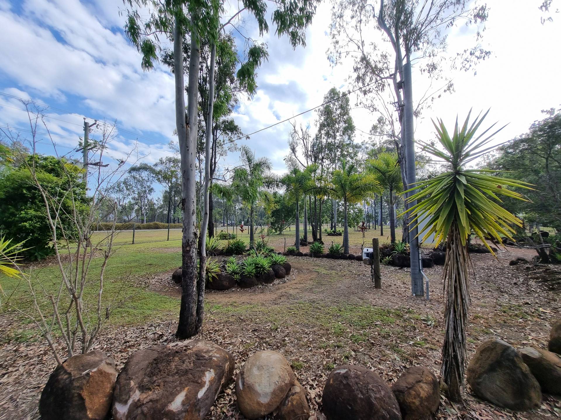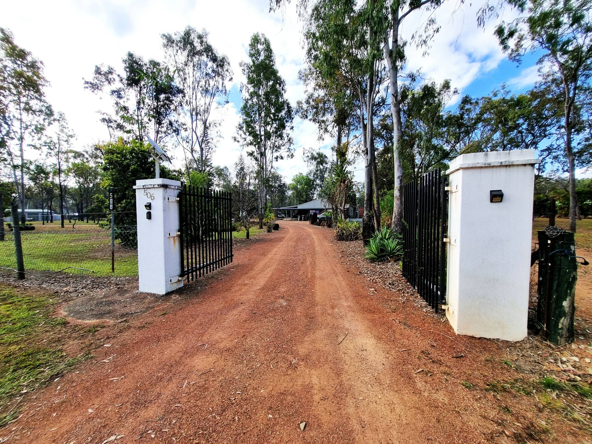 The beautifully landscaped front yard features a solar powered bore feeding irrigation pipes and water tanks. Water security is assured with town water, a 17500l, three 5000l, and one 2500l tank adding up to 35000 litres.