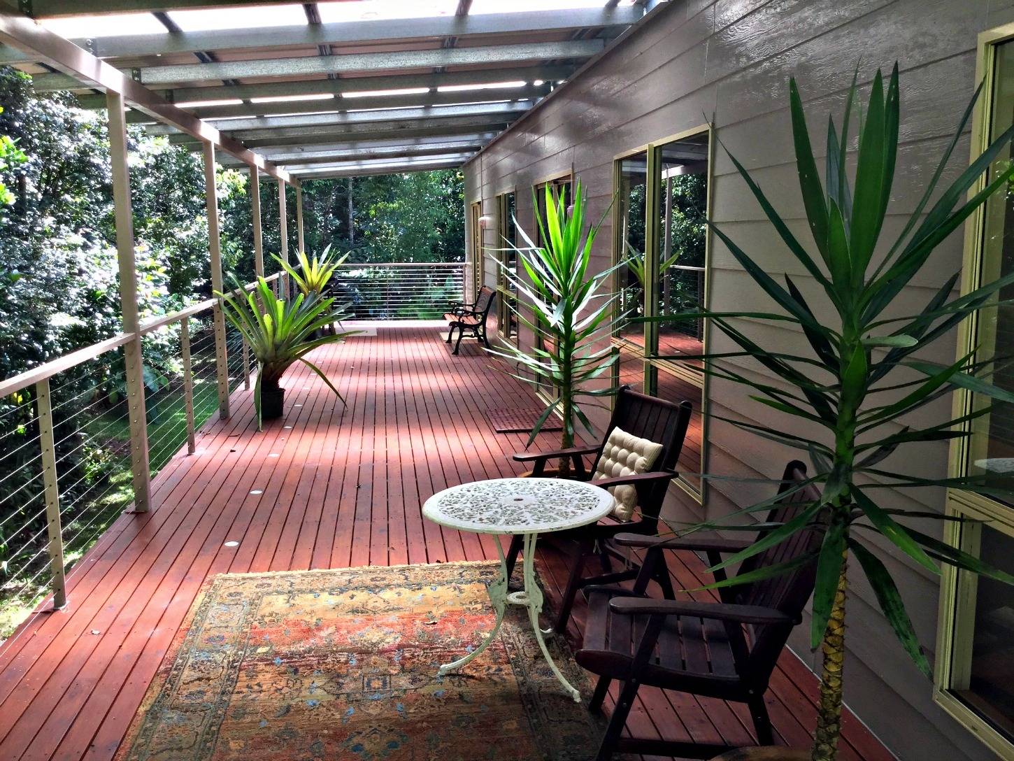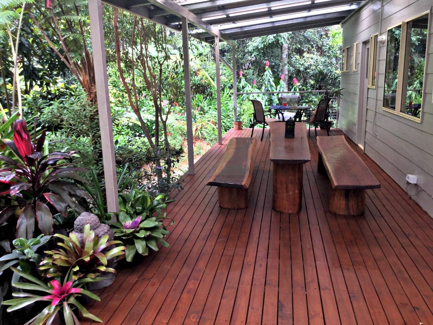 This three bedroom two bathroom home with its own creek surrounded by lush rain forest , staggering gardens and orchard is yours to pick. Less than 15 minutes to Ravenshoe , the property has duel access , fenced, double large balconies . Recently built with modern lighting open easy care bathrooms , wood flooring , carpet in the bedrooms and views of nature where ever you look. The large windows give views that can only be appreciated once seen. Separate large shed/ workshop with carport with power and water, carport under the home this is a must see..........